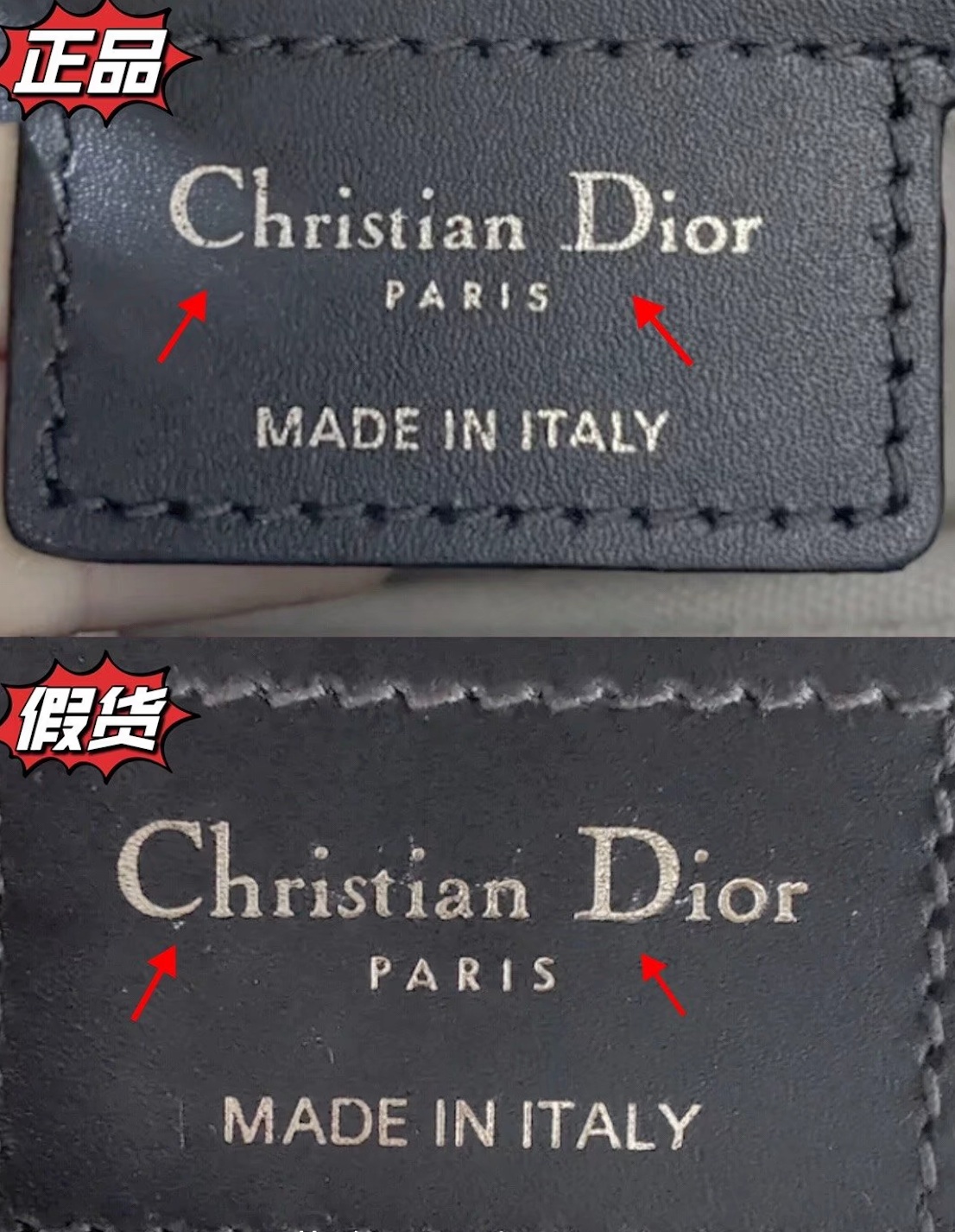 - The easiest way to tell if your Dior bags are real or fake is to examine the serial number printed on the leather plate. If you look at the digit closely, you can see that the digits on real Dior bags are clearly printed end engraved on the letter place. However, the digits might have a flat bottom on the fake Dior bags. As you can see from the picture below, the bottom one is a fake Dior bag, and the digit '0' and '5' have a flat printing in the bottom, which is very different from naturally printed digits on real Dior bags.