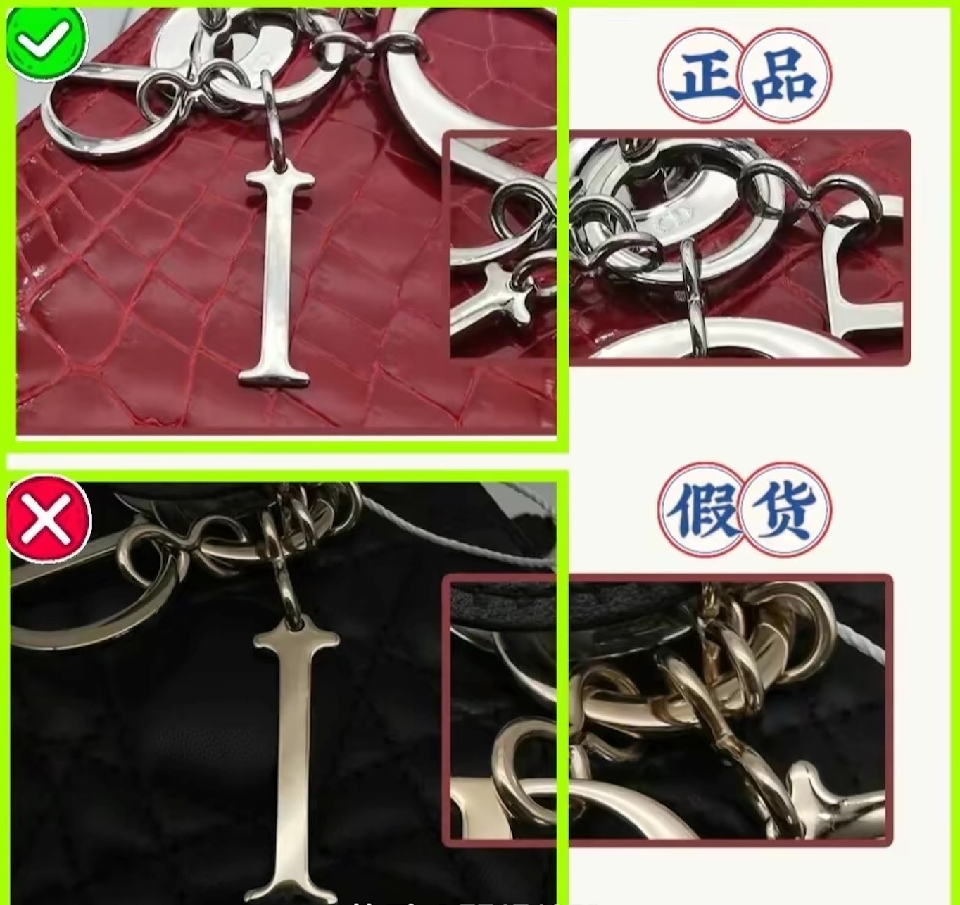 - You can also check the abbreviation of "Christian Dior" "CD" logo engraved on the metal parts. For real Dior bags, the engraved letters should be deep and clear. But for the fake Dior bags, the letters are engraved shallow and may have blurs on the edges. That's because fake Dior bags are using laser to engrave the letters and may cause the blurs on the edges.